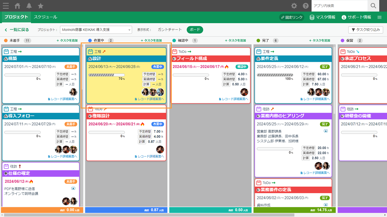 をクリックするとタスクの変更内容が確定しレコードが保存されます。